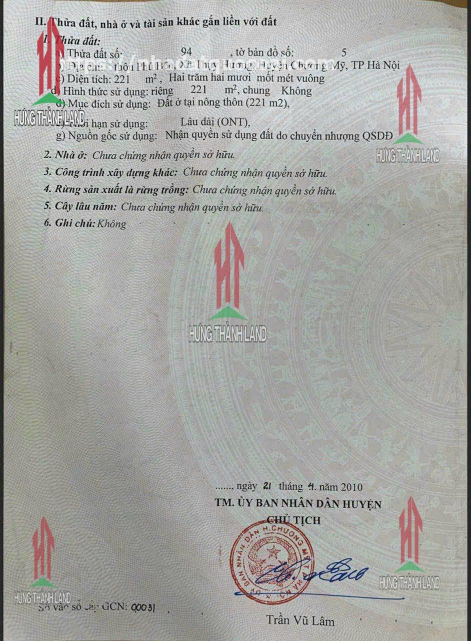 Bất động sản Hưng Thành Land bán lô đất full thổ cư tại xã Thụy Hương _ Chương Mỹ _ Hà Nội